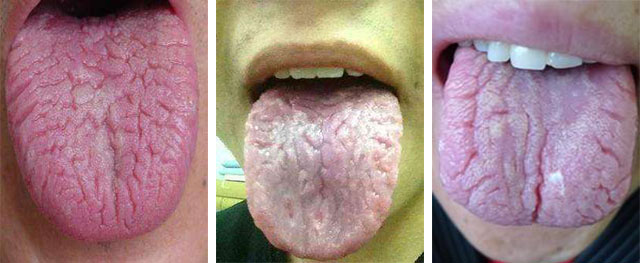 裂纹舌:舌面见多少不等,深浅不一,形状各异的裂纹,称裂纹舌。患病者的裂纹舌舌面有明显的沟裂,而沟裂中并无舌苔覆盖。此舌象一般由于精血亏虚,或阴津耗损,舌体失养,舌面萎缩所致。 < <咨询专家,分析病情> >